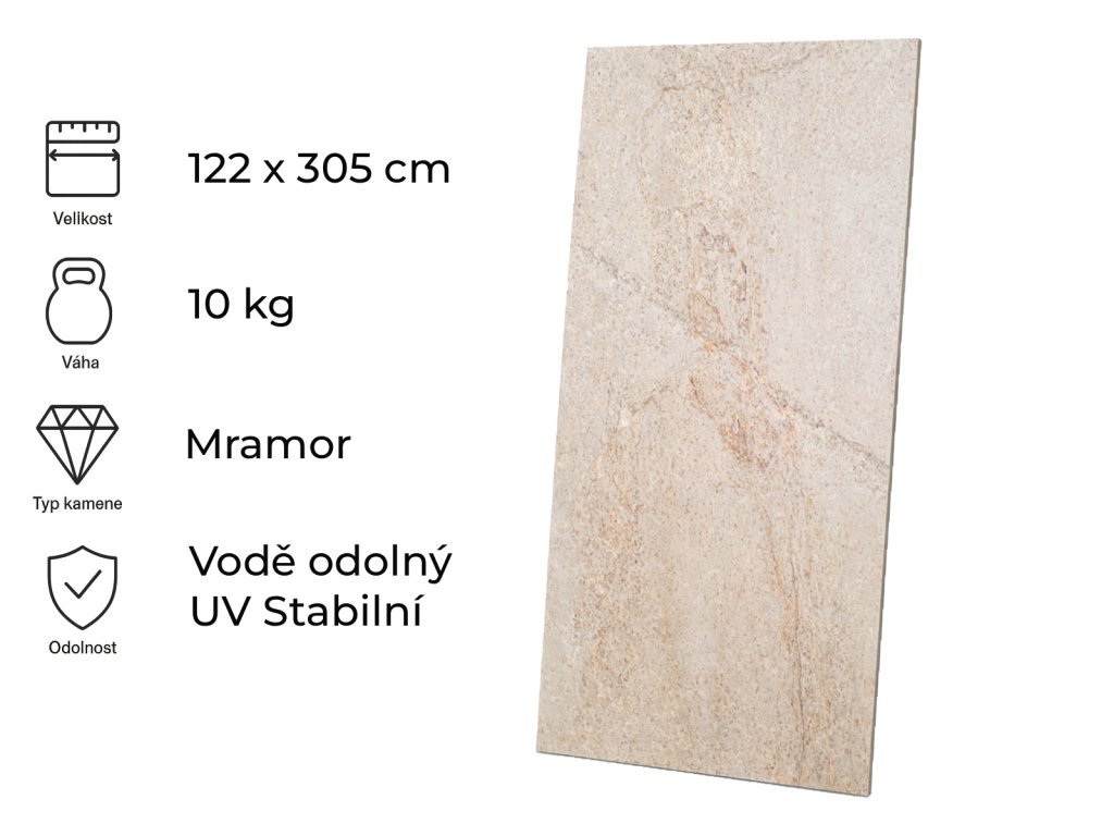 NoticePlease note that the offered stone is a natural material, therefore its appearance cannot be influenced and the samples on our e-shop are only sample photographs of what a particular type of stone looks like, its colour, pattern and relief. In the course of quarrying, the texture and colouring can change even within the same rock type.