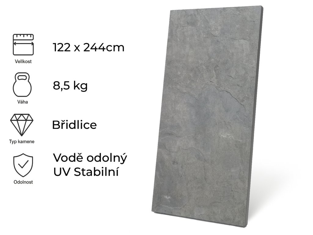 Představujeme vám kamennou dýhu ve stříbrno-šedém dekoru – unikátní přírodní materiál, který je výsledkem spojení krásy přírody a jednoduchého technického procesu. Díky této technologii nabízí obklad extrémní lehkost a zaručuje jedinečný vzhled každého kusu. Kamenná dýha ve stříbrno-šedé je vyrobena ze skutečné břidlice pomocí speciální technologie, která jí propůjčuje nejen elegantní vzhled, ale i skvělé vlastnosti.