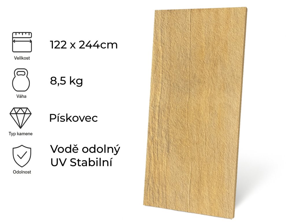 Představujeme vám kamennou dýhu v pískovém dekoru – originální přírodní materiál, který vzniká spojením krásy přírody a jednoduchého technického procesu. Díky tomu nabízí tento obklad extrémní lehkost a jedinečný vzhled každého kusu. Kamenná dýha v pískovém dekoru je vyrobena ze skutečného pískovce pomocí speciální technologie, což jí propůjčuje atraktivní přírodní odstín a výborné vlastnosti.