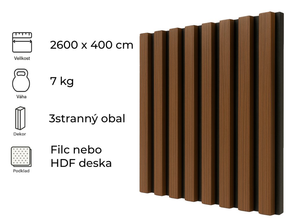 Obkladový panel, Ořech čokoládový 2600*400 mm