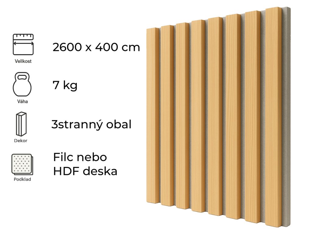 Obkladový panel, šedý filc, Dub Sonoma 2600 x 400 mm