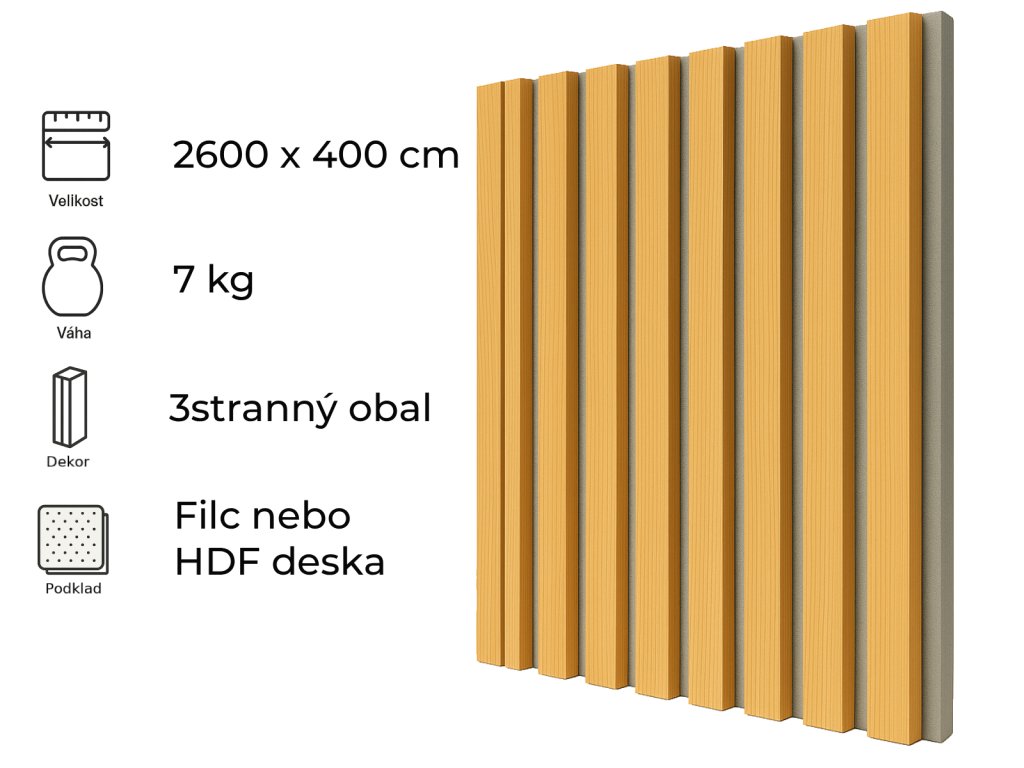 Obkladový panel, šedý filc, Dýha Dub světlý evropský 2600*400 mm