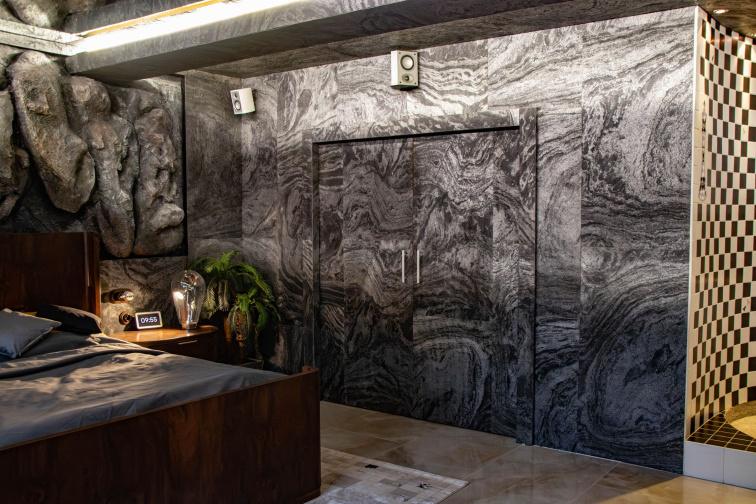 Akustické lamelové panely, dekorační obklad a kamenná dýha Silver Grey Black v obývacích pokojích, kuchyních, zasedačkách i komerčních prostorech.